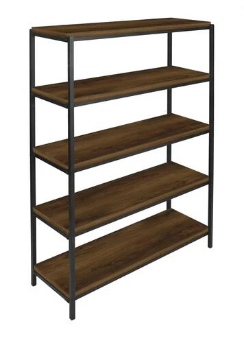 Combine style and functionality with this five-shelf modern bookcase. This bookcase features five bourbon thick boards that are suspended by a black steel powder-coated welded frame. It will seamlessly fit in any room and can be used to store anything from books to decorative items.