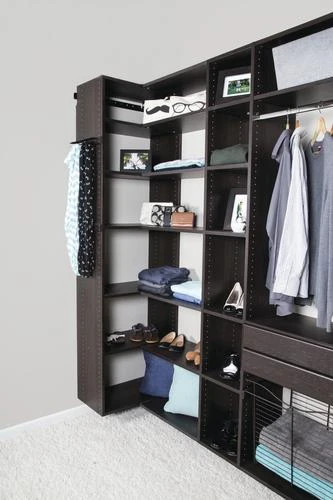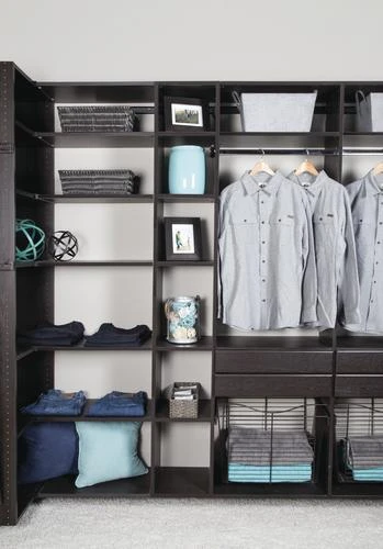 - Customize your space with additional accessories such as baskets, valet rods and tie/belt racks