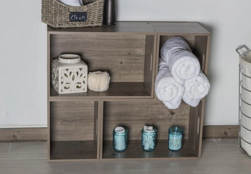 Stäckūbe™ shelving system from Dakota™ is a stackable, modular system that adapts to your ever-changing organizational needs. The versatile Stäckūbe™ boxes are easy to assemble and configure into your perfect organizational space. Convenient handles make each Stäckūbe™ portable and easy to carry. Mix and match the large and small Stäckūbe™ to hold magazines, organize books or DVDs, or showcase your heirloom knickknacks – the possibilities are endless! For additional design ideas, click on the “Technical Specifications” below.