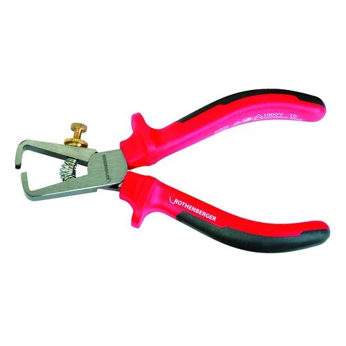 Insulated Stripper. Special tool steel, oil hardened, chrome-plated, zero-play joint, heavily insulated handles, with adjustment screw and opening spring.