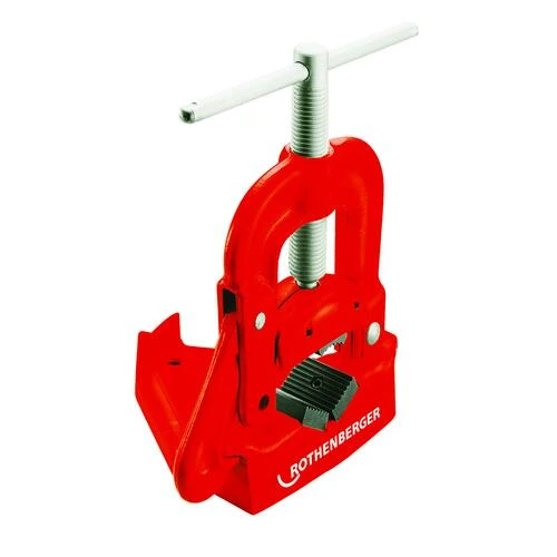 Pipe Vice 1/8 – 2″. Foldable, with automatic closing hook, upper jaw and lower support jaw milled and hardened. Powerful smooth-running spindle. Durable epoxy-powder coated. Reliable hold: Pipe support and movable upper jaw.