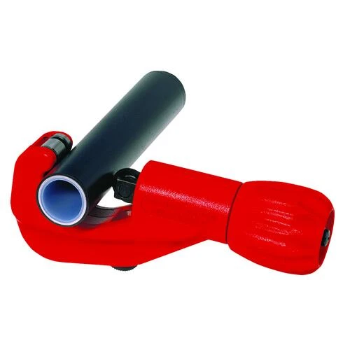 Tube Cutter TC 35 MSR 1/4 – 1. 3/8″. Telescopic pipe cutter for multi-layer composite pipes. Space-saving work, also in confined spaced, uniform, small working radius of 123mm. Right-angled and burr-free cutting with precise telescopic guidance. Fast and simple adjustment for the working range due to the feed being synchronized with the feeder rotation. Optimum, fatigue-free operation with optimized ergonomic handle. Only one tool for cutting and deburring, integrated, retractable internal pipe deburrer. Spare cutter wheel in the handle.